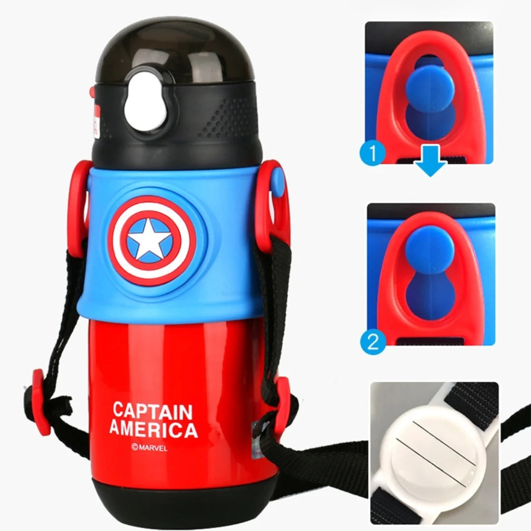 With its official Marvel Captain America design, leakproof flip-top lid, and easy-carry strap, this bottle combines safety, functionality, and excitement for kids who love their favorite Avenger.
