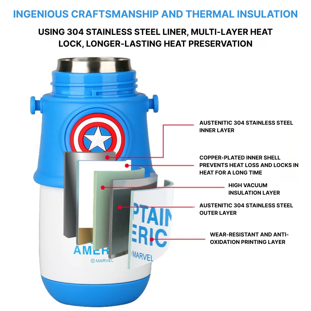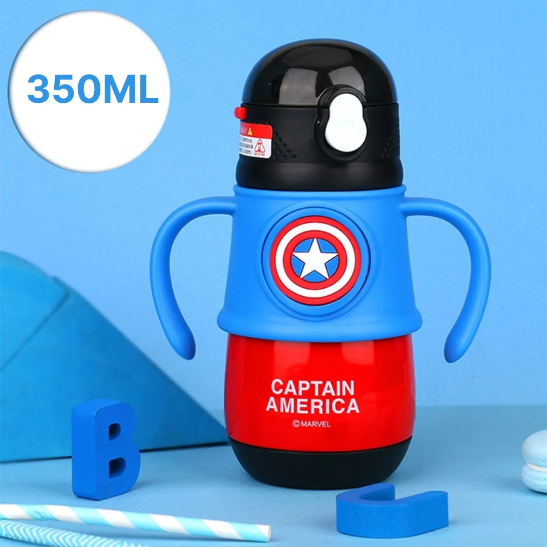 TinyBliss Marvel Captain America HeroSip Kids Bottle- 350ml Stainless Steel Insulated BPA-Free